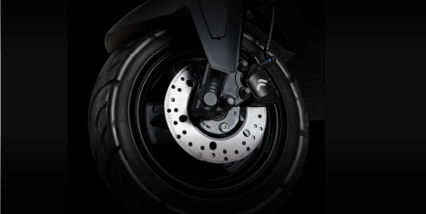 The dual opposing piston disc brake design ensures smoother braking performance, equipped with both front and rear disc brakes for enhanced safety and control.